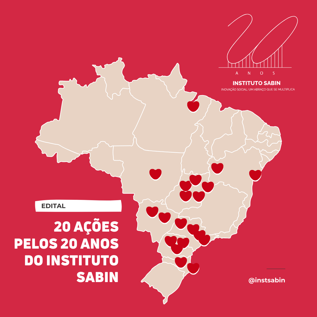 Como parte das comemorações de duas décadas de atuação transformadora, o Instituto Sabin lançou o edital “20 ações pelos 20 anos do Instituto Sabin”, com o objetivo de mobilizar colaboradores(as) do Grupo Sabin em todo o país a proporem iniciativas alinhadas aos pilares da atuação social da organização.